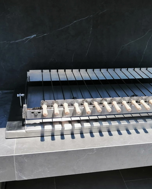 Absolutely! Just tell us how you enjoy cooking over fire. For example, do you prefer grilling steaks or burgers directly over the grill by hand? Would you like to place beef, chicken, or pork cubes on skewers and let them automatically rotate with our rotisserie motor? Maybe you’d like a combination of both options. You can also choose a flat shashlik-style kebab setup, or even add a large skewer (12mm or 16mm) to roast a whole animal. Whatever your vision is, we’re here to guide you and answer any questions to create the perfect barbecue for your needs.