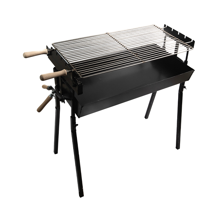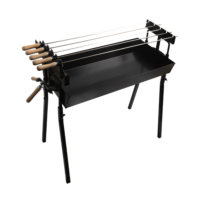 The Simplified BBQ w/ Chain brings a timeless BBQ style into modern control with its smooth, chain-operated lifting system. Measuring 70x37x65cm, it’s the ideal choice for families or gatherings of 8–12 people. It comes equipped with 3 thick skewers and 5 thinner ones, offering the perfect layout for skewered meats and sides. You also have the option to add a full 70cm grill tray for steaks, chops, or vegetables, plus compatibility with an electric motor for automated cooking. It’s built for flexibility, performance, and no-fuss outdoor grilling.
